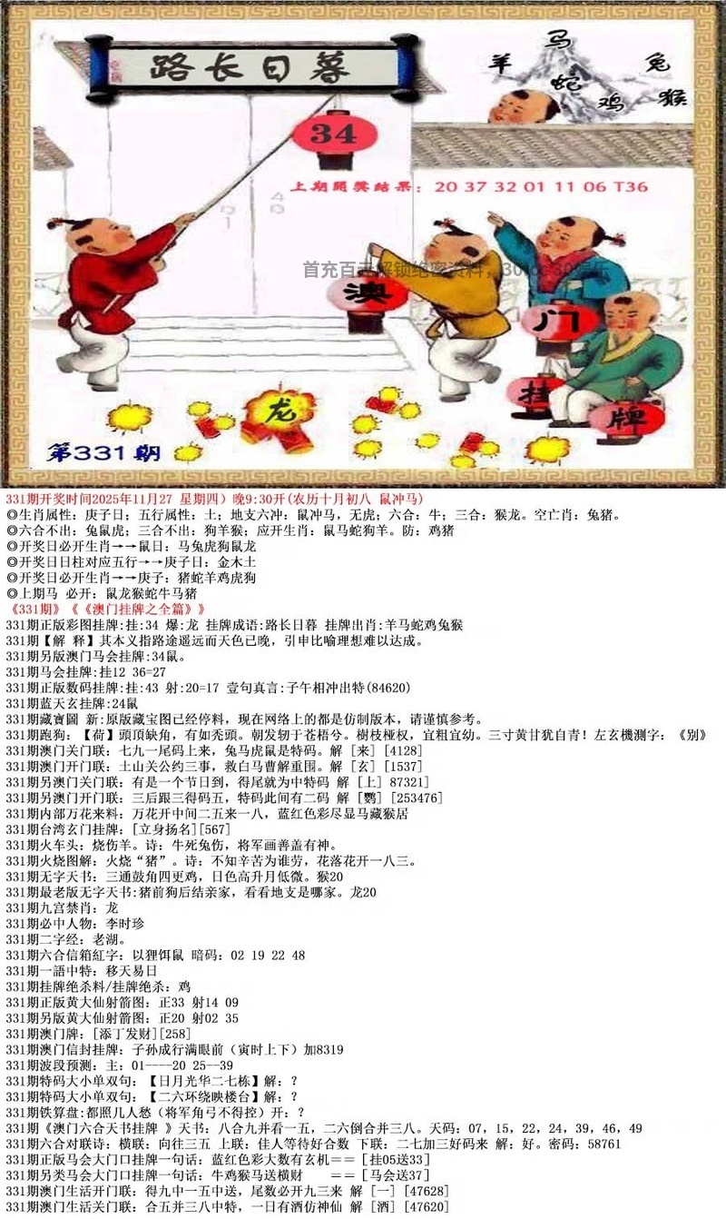331期阳阴两肖阴肖+虎猴】开:龙26中